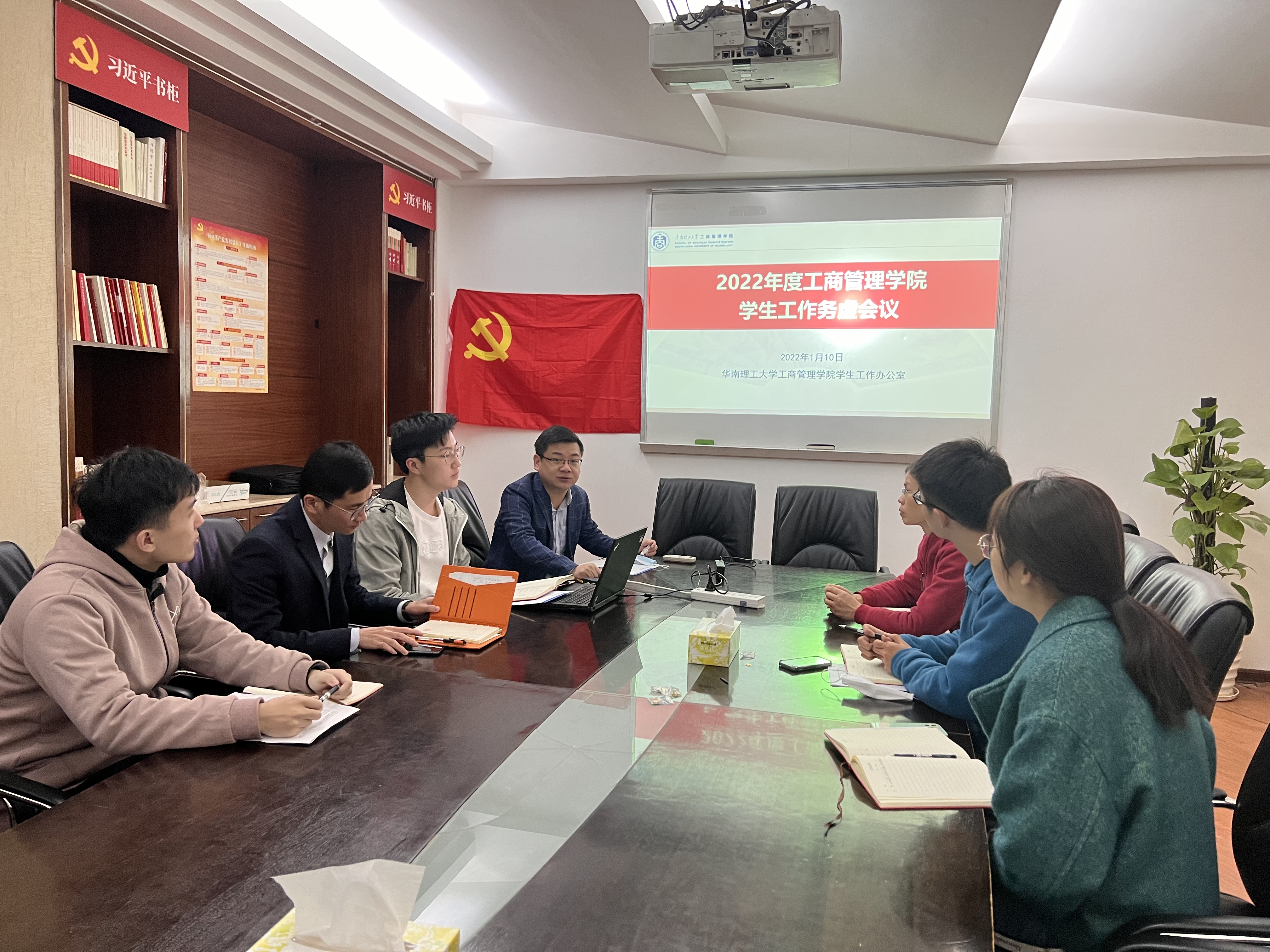 继往开来新征程,重整行装再向前。2022年1月10日上午,工商管理学院学生工作务虚会议在学院楼208会议室召开。学院党委副书记陈强老师与全体辅导员交流思想、以虚促实,擘画2022年度学院学生工作新蓝图和新目标。