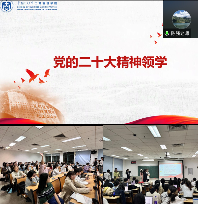 引导学生组织学生骨干带头“先学一步”。学院党委副书记陈强分别在11月13日和11月19日面向本科生学生代表、团员代表和全体研究生新生党支部支委宣讲党的二十大精神。11月13日,在学院第十七次团代会、第二十次学代会上,陈强面向线上与线下200余位本科生学生代表宣讲了党的二十大精神,要求学生代表们要切实将学习成果扎根在头脑里、体现在岗位上、落实到工作中,不断加强理论学习、不断追求个人能力提升,勇立潮头、投身实践,争做堪当民族复兴大任的时代新人。11月19日,陈强在广州国际校区与全体研究生新生党支部支委一起梳理党的二十大报告中的新论断、新战略和新要求,并希望同学们发挥示范带头效应,厚植爱国情怀,树立远大理想,踏实埋头苦干,练就过硬本领,用党的二十大精神指导科研和实践,把论文写在祖国的大地上。
