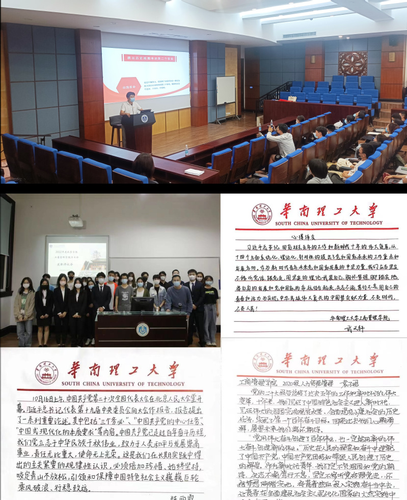 营造浓厚氛围促进学思践悟“学实一些”。学院各级学生组织依托“华工工管之声”及“华研工商”微信公众号等新媒体平台,开设“党旗领航”、“喜迎二十大”、“学习二十大”等板块,定期宣传报道党的二十大盛况和学习资料,重点刊登官方权威媒体报道和专家解读文章,集中展示基层党团支部和班级学习贯彻党的二十大精神的特色做法与靓丽风采,着力打造全院师生学习宣传贯彻党的二十大精神的“发布厅”“加油站”。
