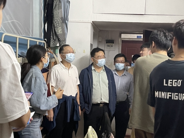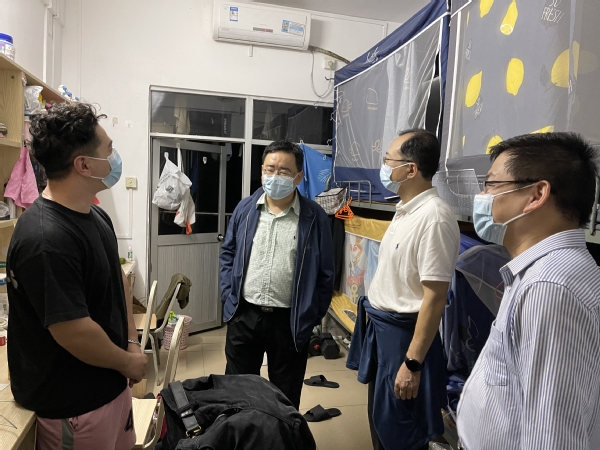 疫情的严峻形势和防控工作牵动着每个人的心。为积极配合和落实疫情防控要求,落实学校疫情防控专题会议精神,筑牢校园安全防线,11月26日晚,学校党委常委、学院党委书记邹浩,学院院长许治,学院党委副书记陈强以及全体辅导员到五山校区西二十一学生宿舍走访,了解和关心校园封闭管理期间学生的思想动态和健康情况。