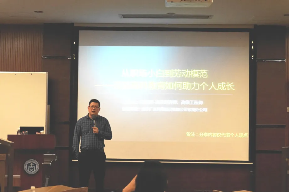 2023年11月7日(周二)晚上,白昼渐短,夜幕早早降临,参加讲座的学生们陆续来到五山校区12号楼105室,期待着一场精彩的主题分享与交流。本期校友讲座邀请到华南理工大学工商管理学院EMBA&MBA东莞校友会顾问何振亮校友,带来“从职场小白到省五一劳动奖章获得者——浅谈商科教育如何助力个人成长”的主题分享。他用自己在职场几十年的亲身经历和丰富的数据,给现场的20多名同学们分享了做人、做事等方面的宝贵经验。