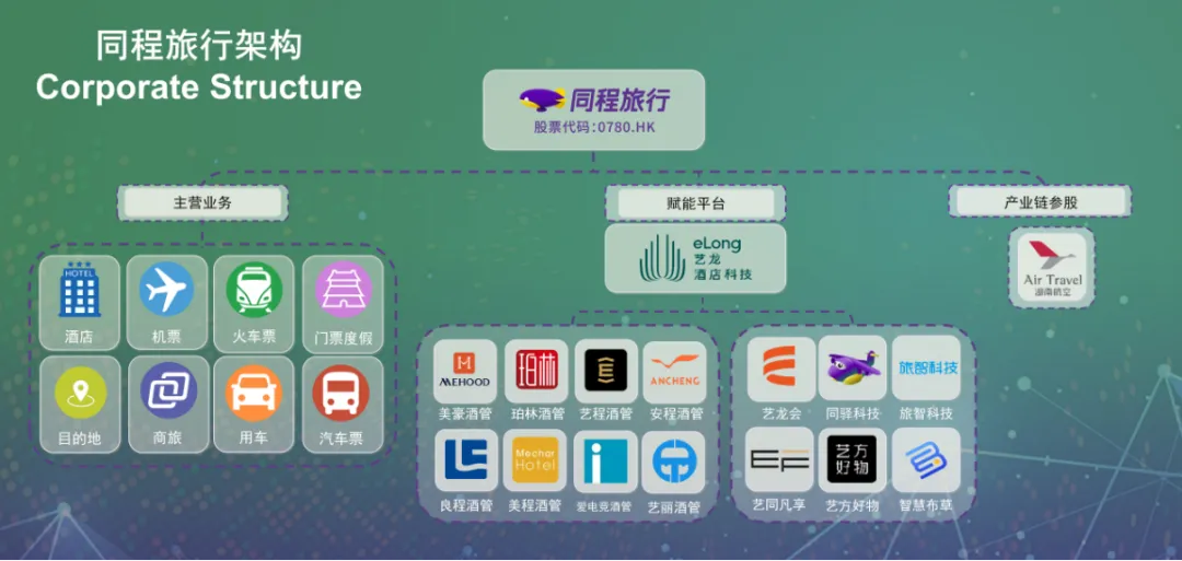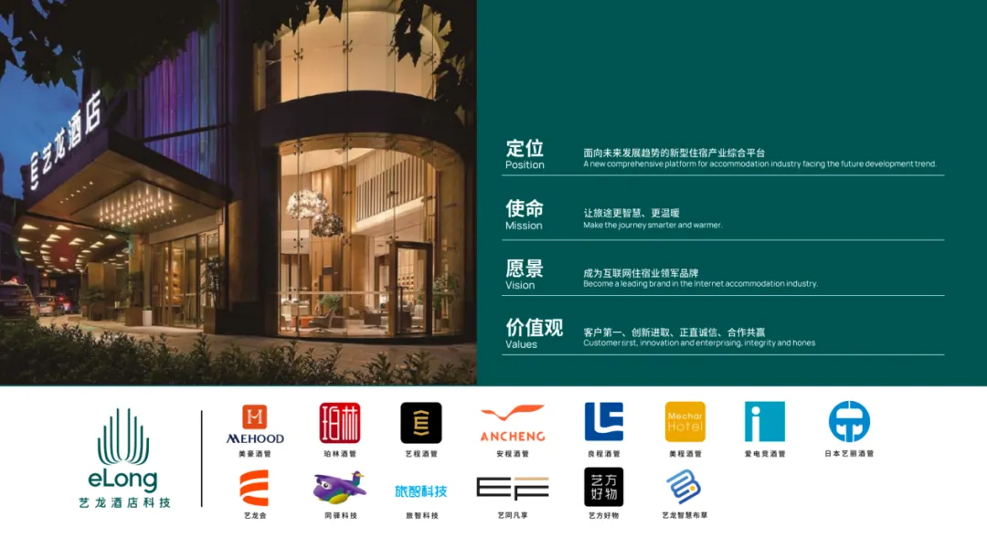 艺龙酒店科技于2021年由同程旅行成立。通过内部孵化、战略投资,艺龙酒店科技平台已形成多元化的酒管品牌矩阵,入驻平台的企业有美豪酒管、珀林酒管、艺程酒管、安程酒管、良程酒管、爱电竞酒管、美程酒管、吉程酒管、日本艺丽酒管等多家酒管公司,以及同驿科技、旅智科技、艺龙智慧布草等住宿赋能中台。艺龙酒店科技拥有完善的会员体系“艺龙会”、新零售平台“艺方好物”及创新体验空间“ROBOT AND COFFEE”,能够充分满足用户商务差旅、休闲度假等多元化出行住宿需求。