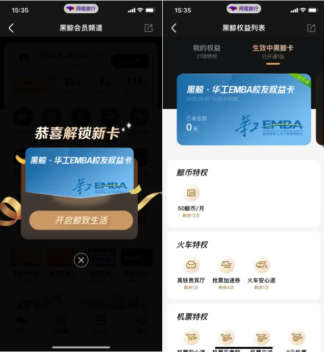 不只是旅行,更是生活的一部分。现在,就让我们一起出发,用同程黑鲸校友权益卡,开启一段段美好的旅程吧!
