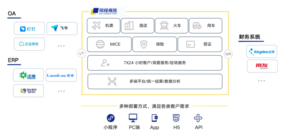 在企业服务方面,同程旅行提供一站式平台,将多种资源广泛链接,丝滑融入企业管理。已合作5000+大型企业,为千万商旅人士出行提供保障。