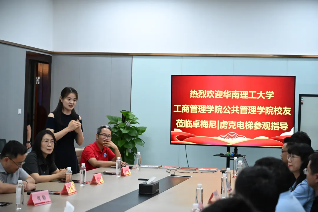 5月24日,天气暖而不燥,草木葱茏正盛。华南理工大学工商管理学院书记周勤、院长许治、公共管理学院院长李胜会、党委副书记黄艳华以及工商管理学院校友办主任吉美逸亲自带队,携手中山校友会等三十余位校友们齐聚中山虏克电梯有限公司,开展了一场意义非凡的参观交流活动。此次活动不仅为校友们提供了一个重温校园情谊的平台,也让大家深入了解了虏克电梯在行业内的创新实践与卓越成就。