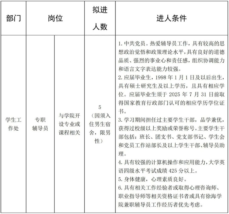 中国矿业大学徐海学院2026年公开招聘专职辅导员公告