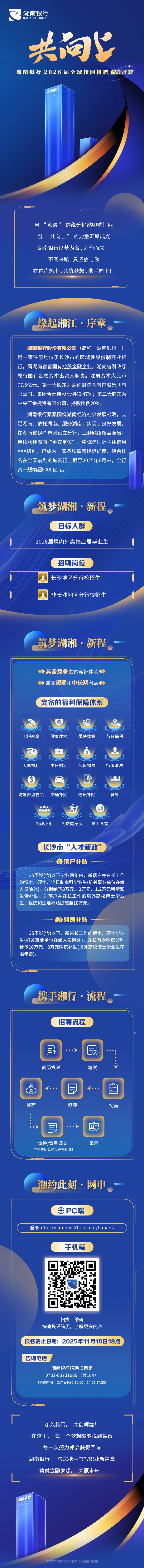 与湖南银行,共筑梦想,共向上!招聘咨询电话:0731-88731888转184,欢迎同学们点击网申链接了解更多具体招聘信息~