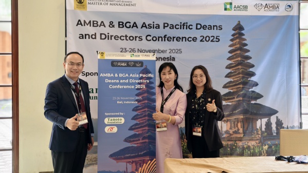 2025年11月24日至27日,英国工商管理硕士协会及商学院毕业生协会(AMBA&BGA)2025年亚太区年会在印度尼西亚巴厘成功举办。来自亚太地区60余所商学院的百余名代表齐聚一堂,共商商科教育未来发展大计。学院党委书记周勤、MBA项目主任王雁飞教授、国际合作与认证办公室孟蕊应邀参会,并代表学院正式领取AMBA再认证证书。