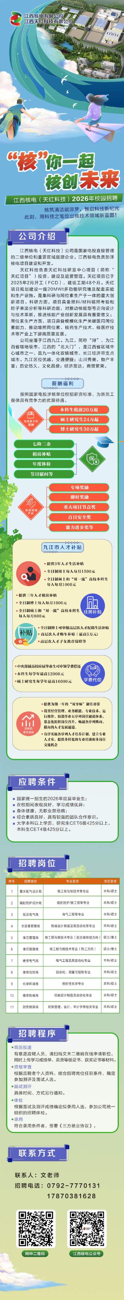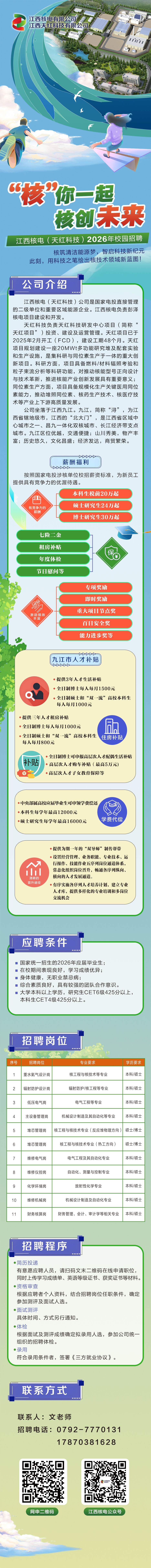 【央企】江西核电(天红科技)有限公司2026秋季校园招聘开始啦