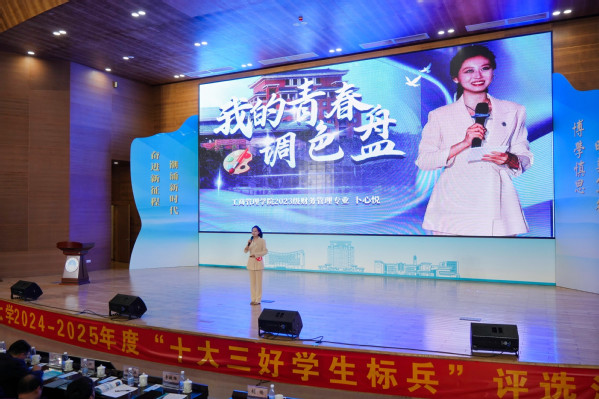 在“十大三好学生标兵”评选现场,卜心悦以“青春调色盘”为叙事主线,通过“泥土黄、远行蓝、希望绿、赤子金”四个篇章,系统呈现了其成长历程与精神追求,充分展现了新时代青年学子的责任担当与远大抱负,凭借富有感染力的现场表现和扎实的综合素质从16位候选人中脱颖而出。