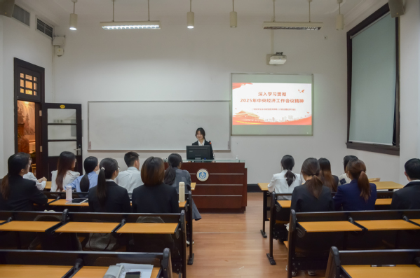 为深入学习贯彻2025年中央经济工作会议精神,深刻领会党中央对经济形势的科学判断和对经济工作的总体部署,引导广大青年团员把思想和行动统一到党的二十大和二十届历次全会精神上来,共青团华南理工大学工商管理学院学生会支部委员会于2025年12月25日举办了以“深入学习贯彻2025年中央经济工作会议精神”为主题的政治理论学习会。本次会议聚焦会议提出的“五个必须”规律性认识,旨在引导学生会骨干准确把握经济工作大政方针,增强投身中国式现代化建设的责任感与使命感。