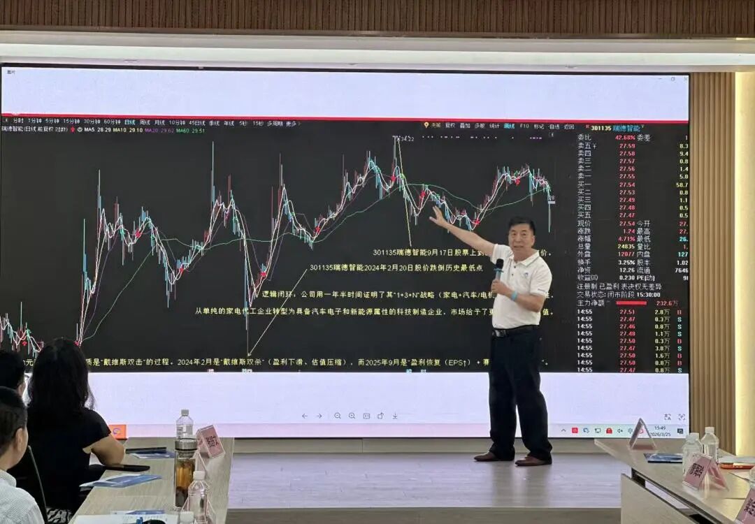 华工顺德校友会创投部高级顾问朱忠良结合股票走势与资本市场表现,对瑞德智能发展进行深度剖析,以专业视角为企业高质量发展建言献策,献上华工智慧与校友力量,并向企业赠送精心编制的企业发展三年规划,为企业长远发展助力赋能。