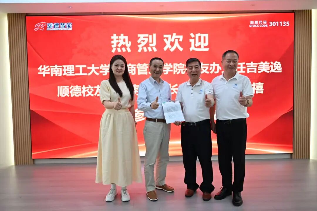 3月25日(周三),华南理工大学工商管理学院校友办主任吉美逸、华南理工大学顺德校友会副会长兼秘书长梁定禧携中山校友会及珠海校友会等各地校友一同走进广东瑞德智能科技股份有限公司,开展深度参访交流活动。走进行业标杆企业一线,探寻智能制造产业密码,共商合作机遇,整场活动热烈而务实,大家收获满满。