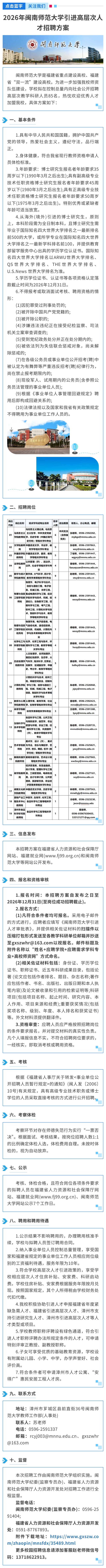 【学校名称】:2026年引进高层次人才招聘方案丨闽南师范大学
